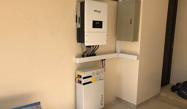 This residential project features the SolaX X1-Hybrid 5kW single-phase inverter, paired with a battery storage system to provide efficient solar energy generation and backup power, enhancing energy independence and reliability.