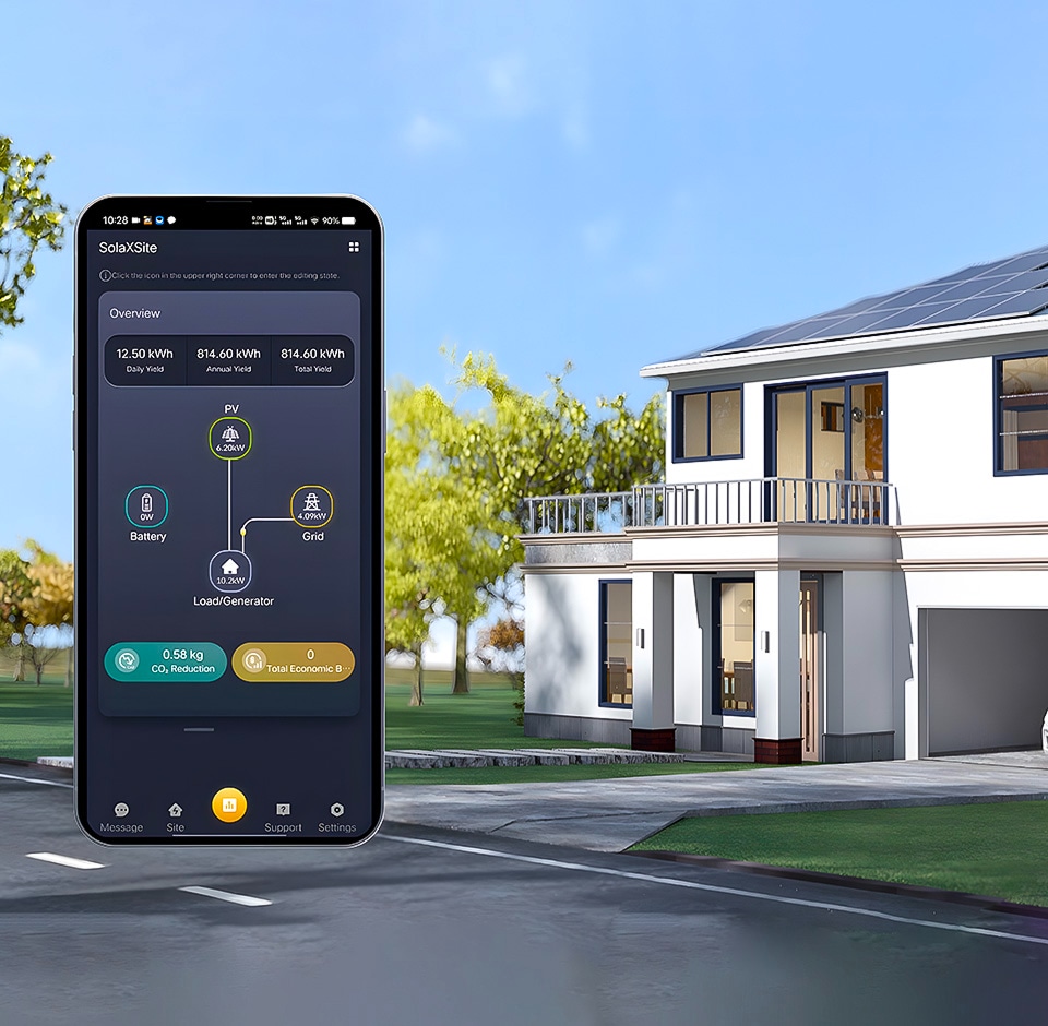 Smart Energy Ecosystem IntegrationSolaX inverters are not just high-efficiency power converters, but also the foundation of a smart energy ecosystem. Seamlessly integrating with EV chargers, heat pumps, and energy storage solutions, they enable intelligent energy management—from solar power generation to home energy consumption optimization. Designed for residential applications, the compact and lightweight design ensures easy installation on rooftops or balconies. -